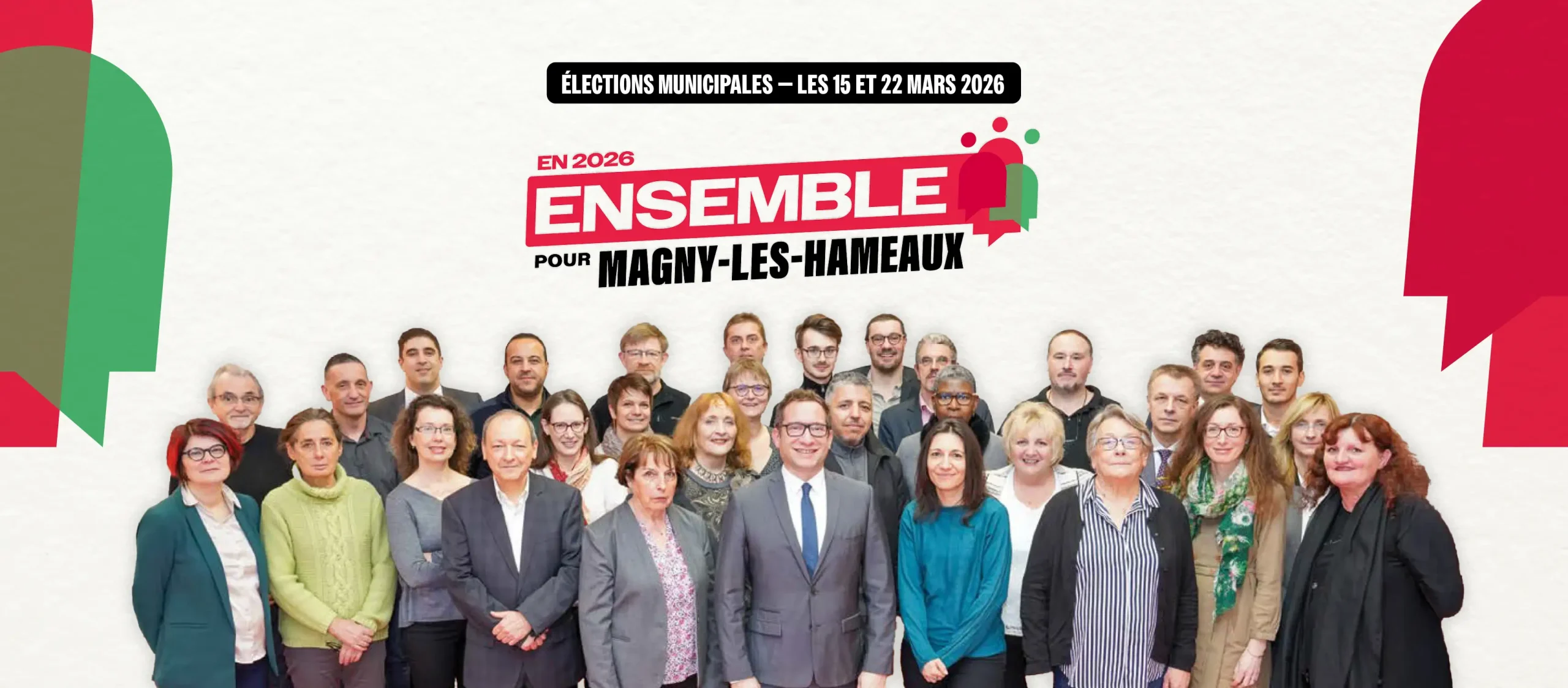 Notre ambition est claire : Continuer à faire de Magny-les-Hameaux une commune à taille humaine, inclusive, écologique et profondément solidaire, capable de répondre aux défis sociaux, climatiques et démocratiques des prochaines années, sans renier son identité de ville à la campagne. Notre équipe rassemble des élus expérimentés et des habitants qui se proposent aujourd’hui d’être vos élus, tous animés par l’envie de servir la commune et ses habitants, en lien avec les agents des services communaux et tous les partenaires (collectivités, Parc naturel régional, État, CAF…).